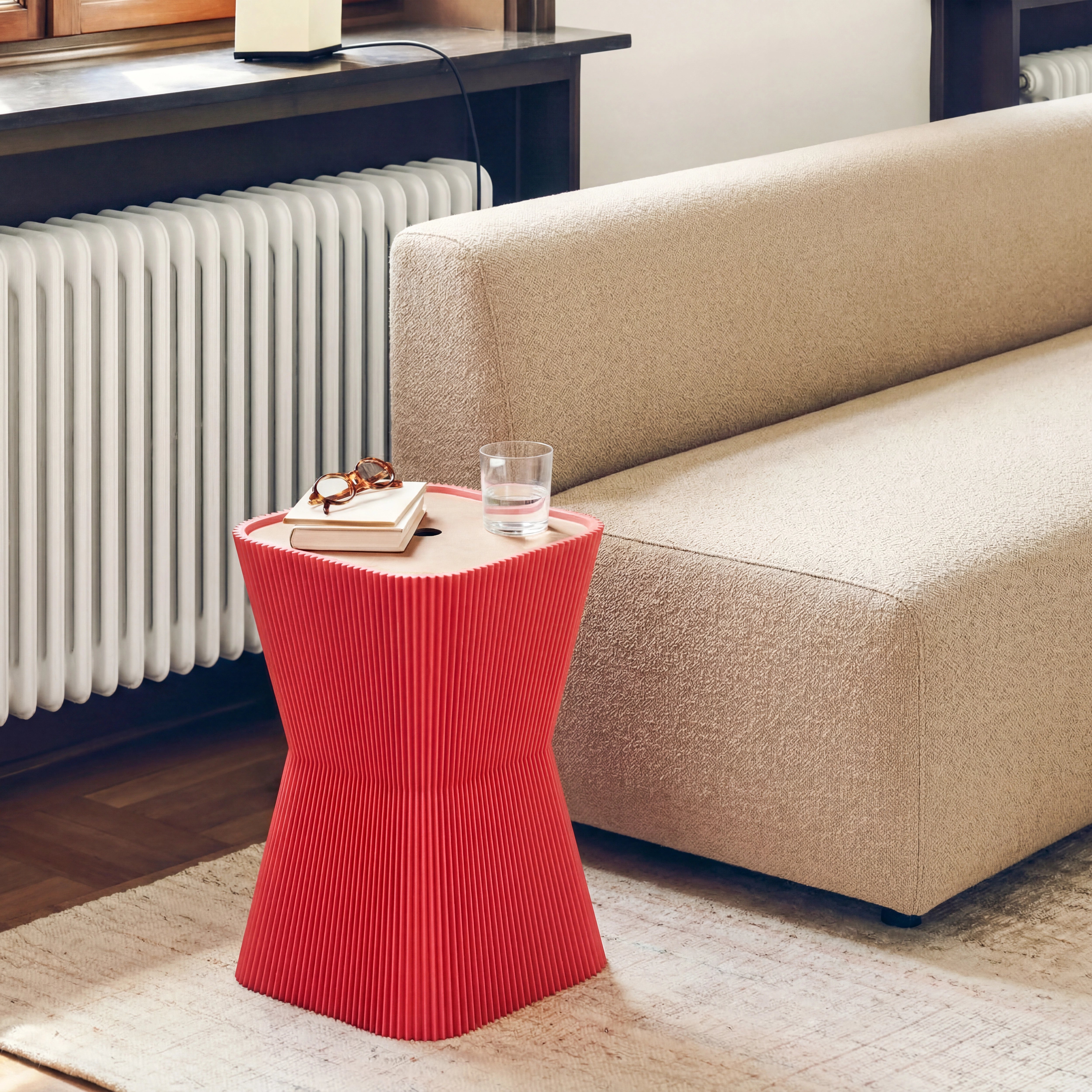 Beistelltisch mit Stauraum: PYRAMIDE kombiniert klare Geometrie mit integrierter Funktion. Platz für Decken, Magazine oder Alltagsgegenstände im Inneren. Minimalistischer Beistelltisch für moderne Wohnräume.